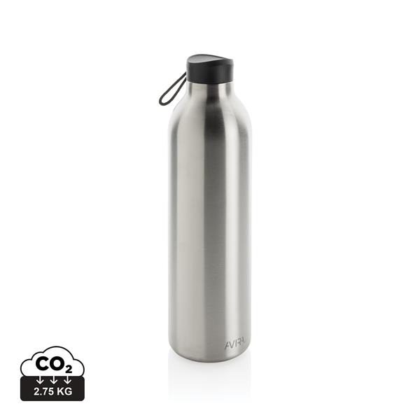 Butelka termiczna 1000 ml, wykonana ze stali nierdzewnej pochodzącej z recyklingu, całkowita zawartość materiałów z recyklingu obliczona na podstawie wagi całkowitej przedmiotu: 97%, podwójne ścianki z próżnią pomiędzy, pasuje do większości uchwytów samochodowych, w pudełku z papieru kraftowego, pudełko można wykorzystać jako stojak na telefon lub doniczkę, utrzymuje temperaturę napojów gorących do 20 godzin oraz zimnych do 20 godzin