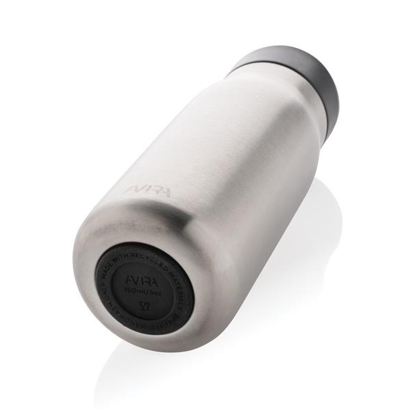 Butelka termiczna 150 ml, wykonany ze stali nierdzewnej z recyklingu z certyfikatem RCS, całkowita zawartość materiałów z recyklingu obliczona na podstawie wagi całkowitej przedmiotu: 74%, w pudełku z certyfikatem FSC®, ślad węglowy produktu: 0,7 kg CO2