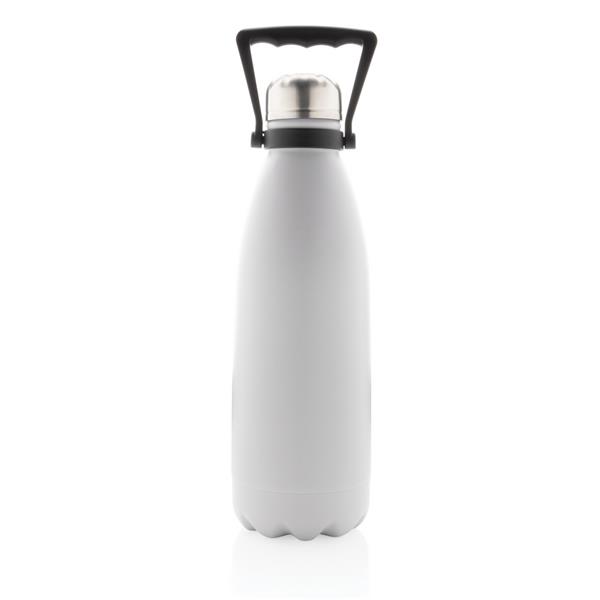 Butelka termiczna 1500 ml z uchwytem, proszkowa powłoka, wykonana ze stali nierdzewnej pochodzącej z recyklingu, całkowita zawartość materiałów z recyklingu obliczona na podstawie wagi całkowitej przedmiotu: 88%, podwójne ścianki z próżnią pomiędzy, w opakowaniu z certyfikatem FSC®, utrzymuje temperaturę napojów gorących do 20 godzin oraz zimnych do 15 godzin