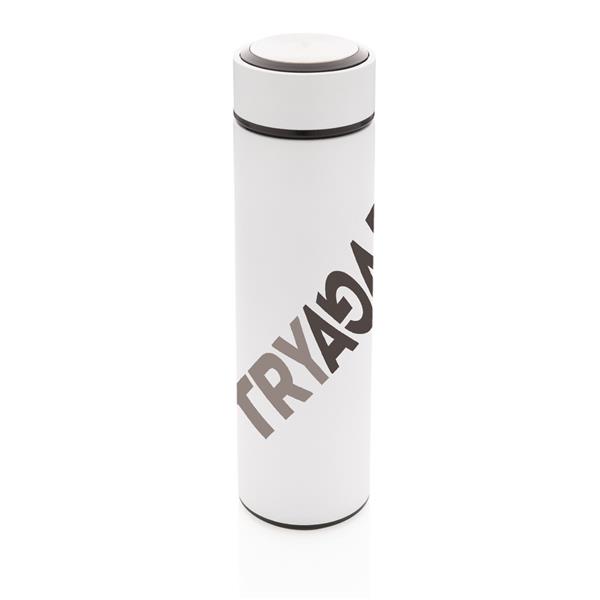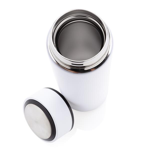 Butelka termiczna 450 ml, podwójne ścianki ze stali nierdzewnej z próżnią pomiędzy, szczelna zakrętka ze stali szczotkowanej, szeroki otwór ułatwia czyszczenie