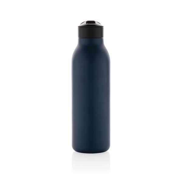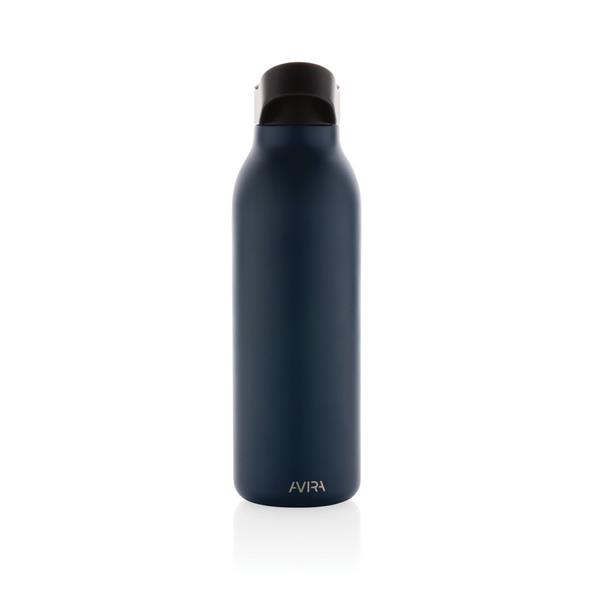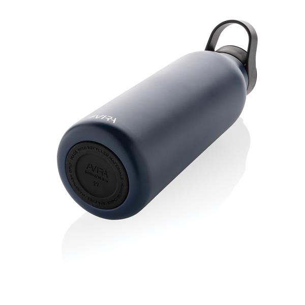 Butelka termiczna 500 ml, wykonana ze stali nierdzewnej pochodzącej z recyklingu, całkowita zawartość materiałów z recyklingu obliczona na podstawie wagi całkowitej przedmiotu: 96%, podwójne ścianki z próżnią pomiędzy, utrzymuje temperaturę napojów zimnych do 20 godzin, pasuje do większości uchwytów samochodowych, pudełko można wykorzystać jako stojak na telefon lub doniczkę, w pudełku z papieru kraftowego