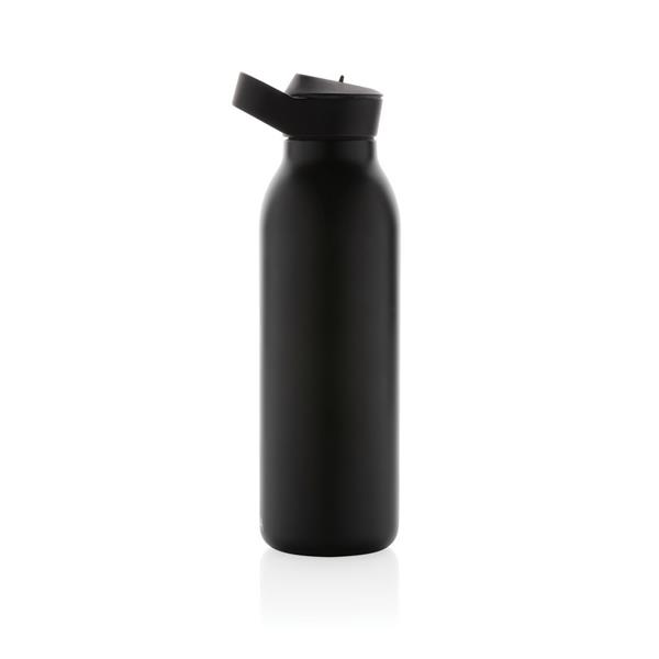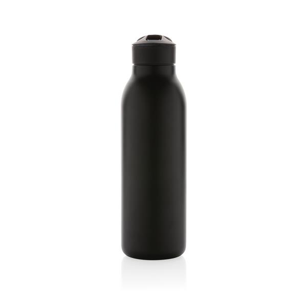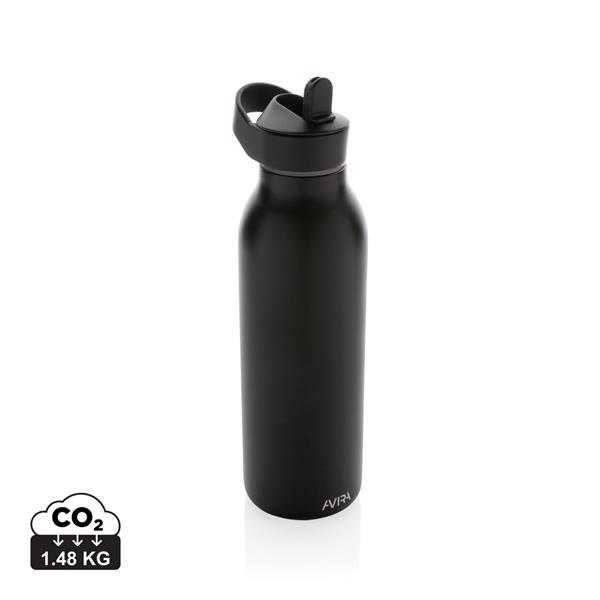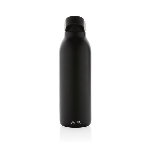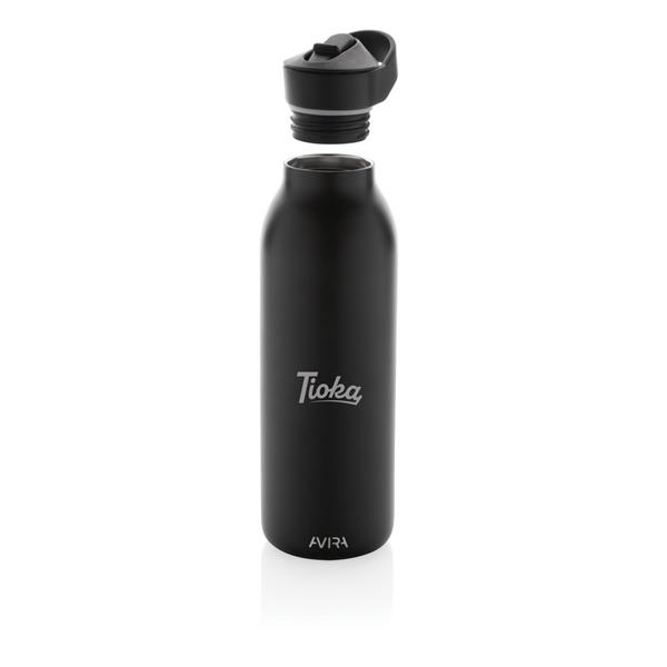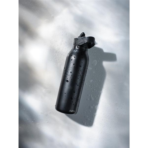 Butelka termiczna 500 ml, wykonana ze stali nierdzewnej pochodzącej z recyklingu, całkowita zawartość materiałów z recyklingu obliczona na podstawie wagi całkowitej przedmiotu: 96%, podwójne ścianki z próżnią pomiędzy, utrzymuje temperaturę napojów zimnych do 20 godzin, pasuje do większości uchwytów samochodowych, pudełko można wykorzystać jako stojak na telefon lub doniczkę, w pudełku z papieru kraftowego