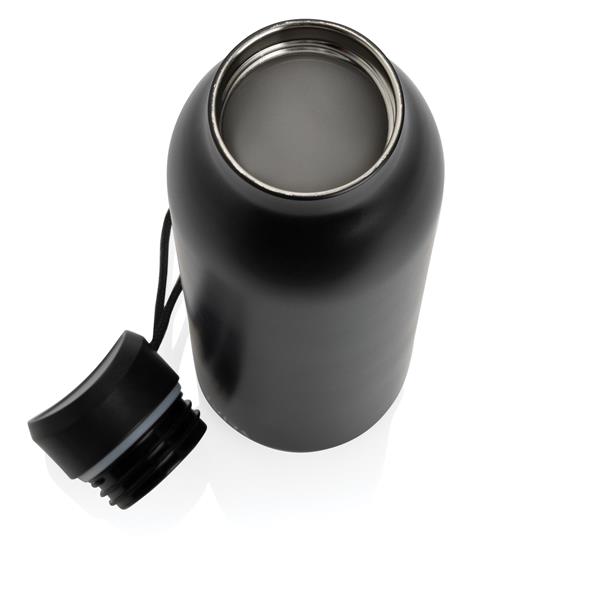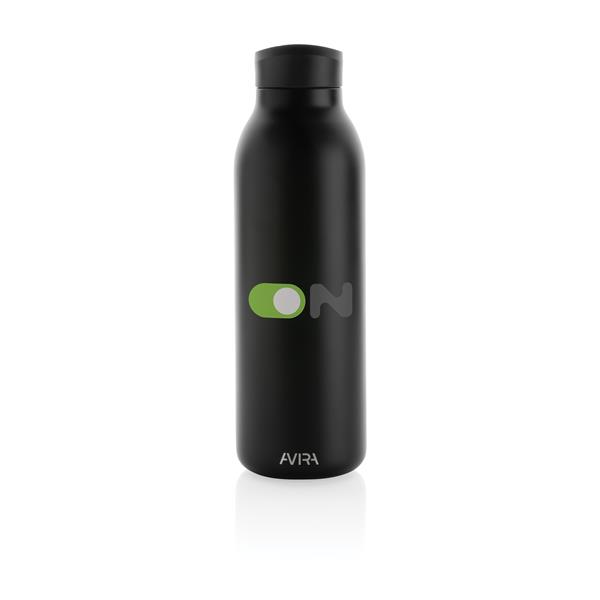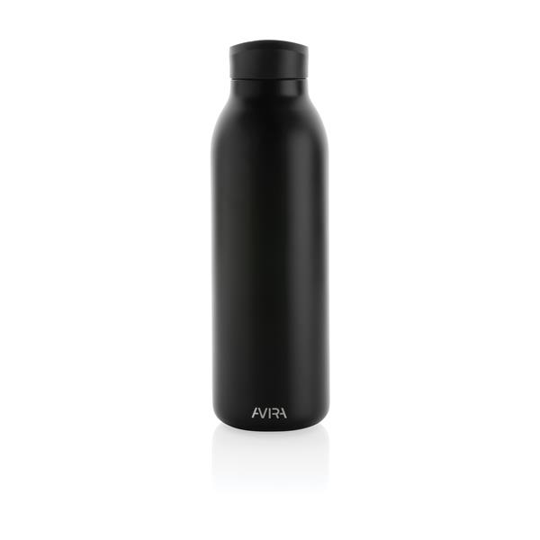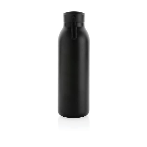 Butelka termiczna 500 ml, podwójne ścianki ze stali nierdzewnej z recyklingu z próżnią pomiędzy, zawartość materiałów z recyklingu obliczona na podstawie wagi całkowitej przedmiotu: 97%, utrzymuje temperaturę napojów ciepłych do 10 godzin oraz zimnych do 20 godzin, pasuje do większości uchwytów samochodowych