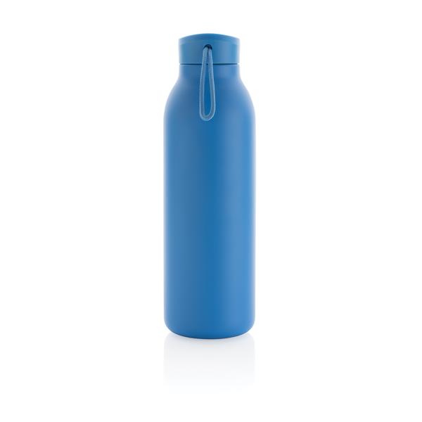 Butelka termiczna 500 ml, podwójne ścianki ze stali nierdzewnej z recyklingu z próżnią pomiędzy, zawartość materiałów z recyklingu obliczona na podstawie wagi całkowitej przedmiotu: 97%, utrzymuje temperaturę napojów ciepłych do 10 godzin oraz zimnych do 20 godzin, pasuje do większości uchwytów samochodowych
