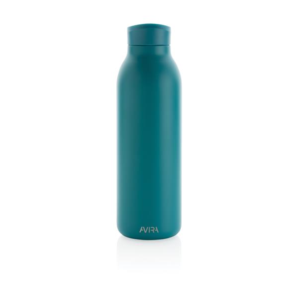 Butelka termiczna 500 ml, podwójne ścianki ze stali nierdzewnej z recyklingu z próżnią pomiędzy, zawartość materiałów z recyklingu obliczona na podstawie wagi całkowitej przedmiotu: 97%, utrzymuje temperaturę napojów ciepłych do 10 godzin oraz zimnych do 20 godzin, pasuje do większości uchwytów samochodowych