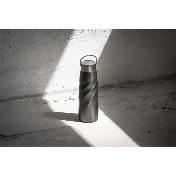 Butelka termiczna 500 ml BrandCharger Vortex Vita, elegancki wygląd, zakręcana nakrętka, leakproof, posiada podwójne ścianki ze stali nierdzewnej, co spowalnia oddawanie temperatury na zewnątrz, zachowując funkcje termosu, utrzymuje temperaturę mrożonych napojów do 3 dni, zimnych napojów przez 48 godzin, a gorących napojów przez 24 godziny, posiada uchwyt do wygodnego przenoszenia w dłoni, produkt wykonany ze stali nierdzewnej pochodzącej z recyklingu, PP i silikonu