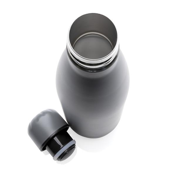 Butelka termiczna 500 ml, podwójne ścianki ze stali nierdzewnej z próżnią pomiędzy, pasuje do większości uchwytów na kubek, utrzymuje temperaturę napojów gorących do 20 godzin oraz zimnych do 15 godzin