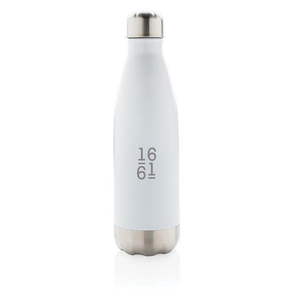 Butelka termiczna 500 ml, podwójne ścianki ze stali nierdzewnej z próżnią pomiędzy, pasuje do większości uchwytów, utrzymuje temperaturę napojów gorących do 5 godzin oraz zimnych do 15 godzin