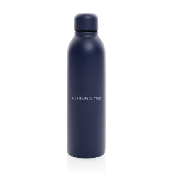 Butelka termiczna 500 ml, podwójne ścianki z próżnią pomiędzy, wykonana ze stali nierdzewnej z recyklingu z certyfikatem RSC (Recycled Claim Standard) który gwarantuje, że wykorzystane materiały pochodzą z recyklingu, całkowita zawartość materiału z recyklingu obliczona w oparciu o wagę całkowitą przedmiotu: 90%, w pudełku z papieru kraftowego, pasuje do większości uchwytów samochodowych, utrzymuje temperaturę napojów gorących do 20 godzin oraz zimnych do 15 godzin