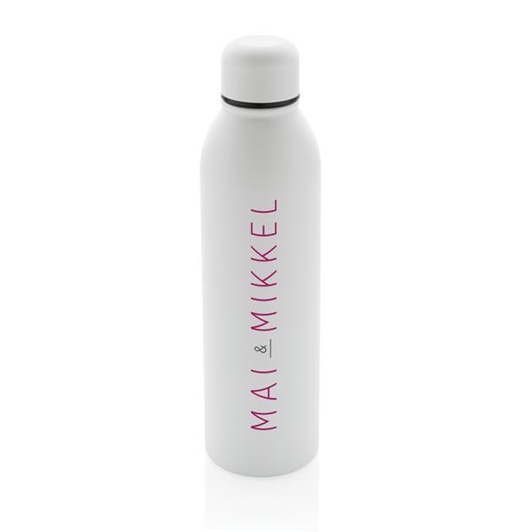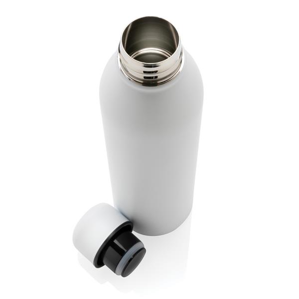 Butelka termiczna 500 ml, podwójne ścianki z próżnią pomiędzy, utrzymuje temperaturę napojów ciepłych do 5 godzin oraz zimnych do 15 godzin, wykonana ze stali nierdzewnej z recyklingu z certyfikatem RSC (Recycled Claim Standard) który gwarantuje, że wykorzystane materiały pochodzą z recyklingu, całkowita zawartość materiału z recyklingu obliczona w oparciu o wagę całkowitą przedmiotu: 90%, w pudełku z papieru kraftowego z certyfikatem FSC® (Forest Stewardship Council), pasuje do większości uchwytów samochodowych, klasa termiczna: A