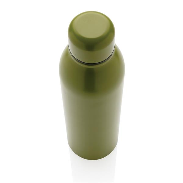 Butelka termiczna 500 ml, podwójne ścianki z próżnią pomiędzy, utrzymuje temperaturę napojów ciepłych do 5 godzin oraz zimnych do 15 godzin, wykonana ze stali nierdzewnej z recyklingu z certyfikatem RSC (Recycled Claim Standard) który gwarantuje, że wykorzystane materiały pochodzą z recyklingu, całkowita zawartość materiału z recyklingu obliczona w oparciu o wagę całkowitą przedmiotu: 90%, w pudełku z papieru kraftowego z certyfikatem FSC® (Forest Stewardship Council), pasuje do większości uchwytów samochodowych, klasa termiczna: A