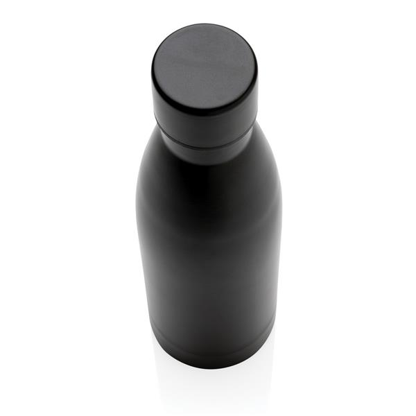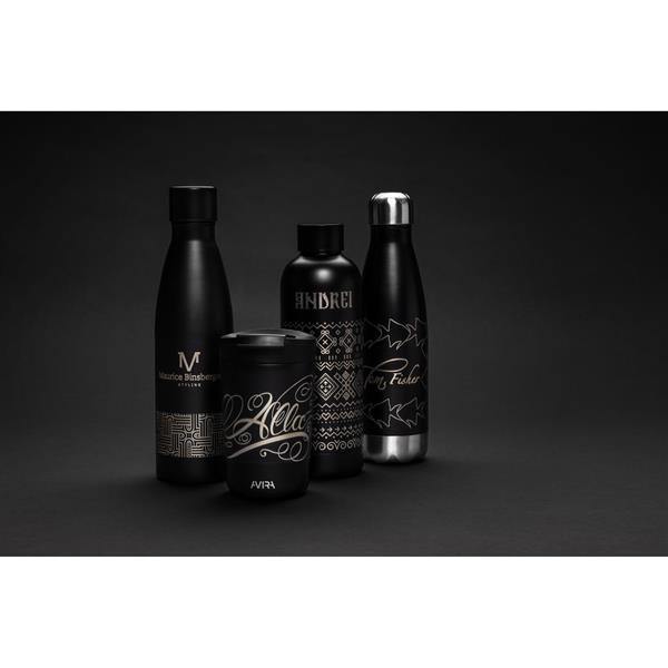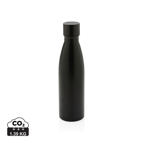 Butelka termiczna 500 ml, podwójne ścianki z próżnią pomiędzy, wykonana ze stali nierdzewnej z recyklingu z certyfikatem RCS (Recycled Claim Standard) który gwarantuje, że wykorzystane materiały pochodzą z recyklingu, całkowita zawartość materiału z recyklingu obliczona w oparciu o wagę całkowitą przedmiotu: 93%, pasuje do większości uchwytów samochodowych, w pudełku z papieru kraftowego, utrzymuje temperaturę napojów gorących do 20 godzin oraz zimnych do 15 godzin