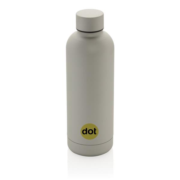Butelka termiczna 500 ml, wykonana z materiałów pochodzących z recyklingu z certyfikatem RCS, całkowita zawartość materiałów z recyklingu obliczona na podstawie wagi całkowitej przedmiotu: 80%, podwójne ścianki z próżnią pomiędzy, minimalistyczne wykończenie, w opakowaniu z papieru kraftowego, utrzymuje temperaturę napojów gorących do 5 godzin oraz zimnych do 15 godzin