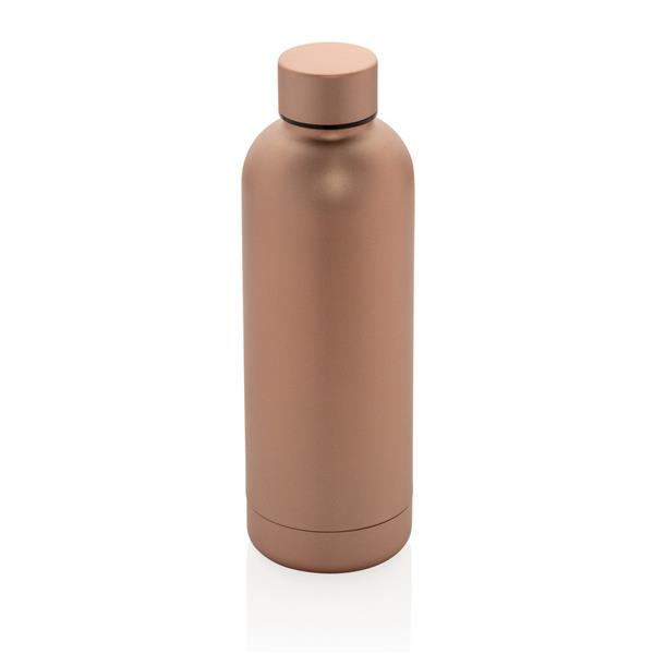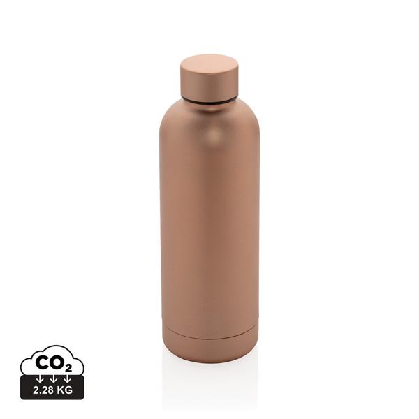 Butelka termiczna 500 ml, wykonana z materiałów pochodzących z recyklingu z certyfikatem RCS, całkowita zawartość materiałów z recyklingu obliczona na podstawie wagi całkowitej przedmiotu: 80%, podwójne ścianki z próżnią pomiędzy, minimalistyczne wykończenie, w opakowaniu z papieru kraftowego, utrzymuje temperaturę napojów gorących do 5 godzin oraz zimnych do 15 godzin