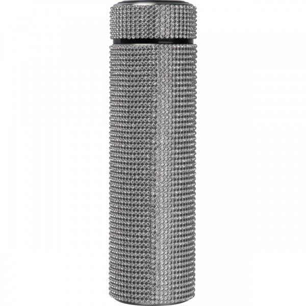 Butelka termiczna z podwójnymi ściankami, wykonana ze stali nierdzewnej ozdobionej cyrkoniami, pojemność 500 ml.