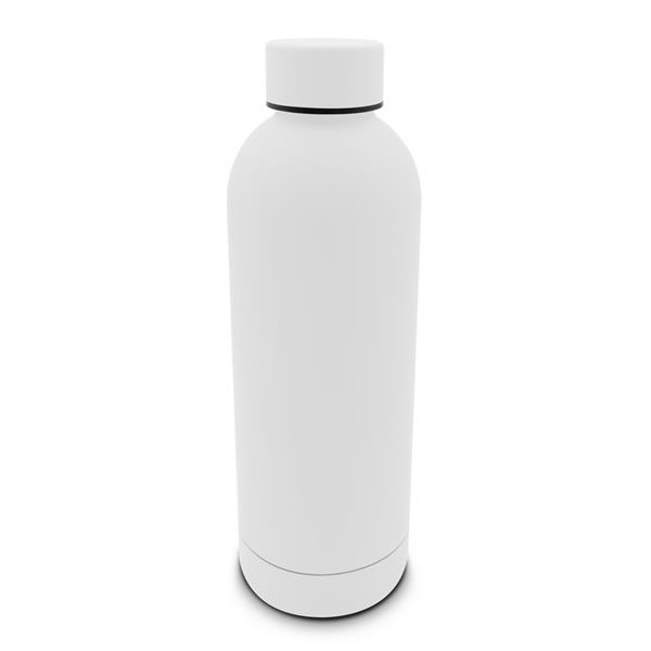 Butelka termiczna 500 ml, podwójne ścianki ze stali nierdzewnej z próżnią między ściankami dzięki czemu zachowuje funkcje termosu i długo utrzymuje temperaturę nie oddając jej na zewnątrz, gumowane wykończenie soft-touch, utrzymuje temperaturę napojów gorących do 20 godzin +leakproof