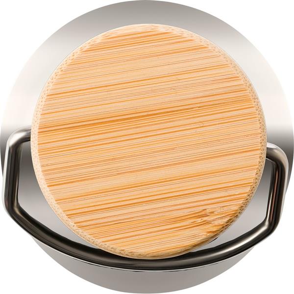 Butelka termiczna 500 ml, podwójne ścianki ze stali nierdzewnej, bambusowa zakrętka, utrzymuje temperaturę napojów gorących do 20 godzin