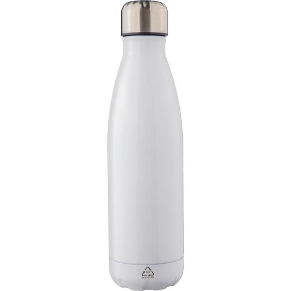 Butelka termiczna 500 ml, posiada podwójne ścianki ze stali nierdzewnej z recyklingu z próżnią między ściankami, co spowalnia oddawanie temperatury na zewnątrz, zachowując funkcje termosu, ikona stali nierdzewnej z recyklingu na produkcie, zapakowana w brązowy kartonik, utrzymuje temperaturę napojów gorących do 20 godzin +leakproof