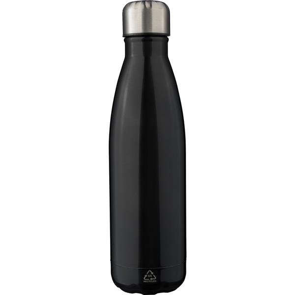 Butelka termiczna 500 ml, posiada podwójne ścianki ze stali nierdzewnej z recyklingu z próżnią między ściankami, co spowalnia oddawanie temperatury na zewnątrz, zachowując funkcje termosu, ikona stali nierdzewnej z recyklingu na produkcie, zapakowana w brązowy kartonik, utrzymuje temperaturę napojów gorących do 20 godzin +leakproof