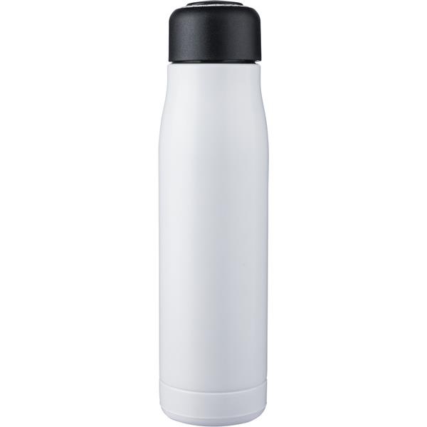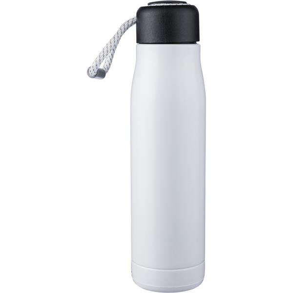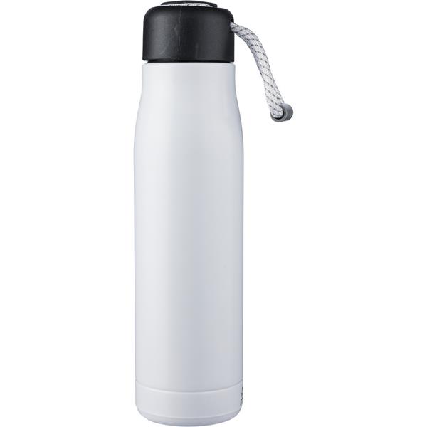 Butelka termiczna 500 ml ze stali nierdzewnej, podwójne ścianki ze stali nierdzewnej z próżnią między ściankami dzięki czemu zachowuje funkcje termosu i długo utrzymuje temperaturę nie oddając jej na zewnątrz, zewnętrzna część wykonana jest ze stali nierdzewnej 201, a wewnętrzna ścianka ze stali nierdzewnej 304, wieczko z PP, sznurek ułatwiający noszenie, ikona recyklingu na produkcie, zapakowana w brązowe kartonowe pudełko, utrzymuje temperaturę napojów gorących do 20 godzin