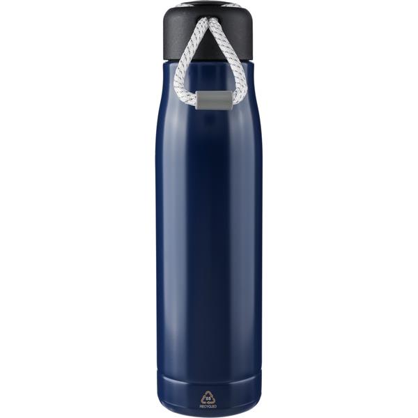 Butelka termiczna 500 ml ze stali nierdzewnej, podwójne ścianki ze stali nierdzewnej z próżnią między ściankami dzięki czemu zachowuje funkcje termosu i długo utrzymuje temperaturę nie oddając jej na zewnątrz, zewnętrzna część wykonana jest ze stali nierdzewnej 201, a wewnętrzna ścianka ze stali nierdzewnej 304, wieczko z PP, sznurek ułatwiający noszenie, ikona recyklingu na produkcie, zapakowana w brązowe kartonowe pudełko, utrzymuje temperaturę napojów gorących do 20 godzin