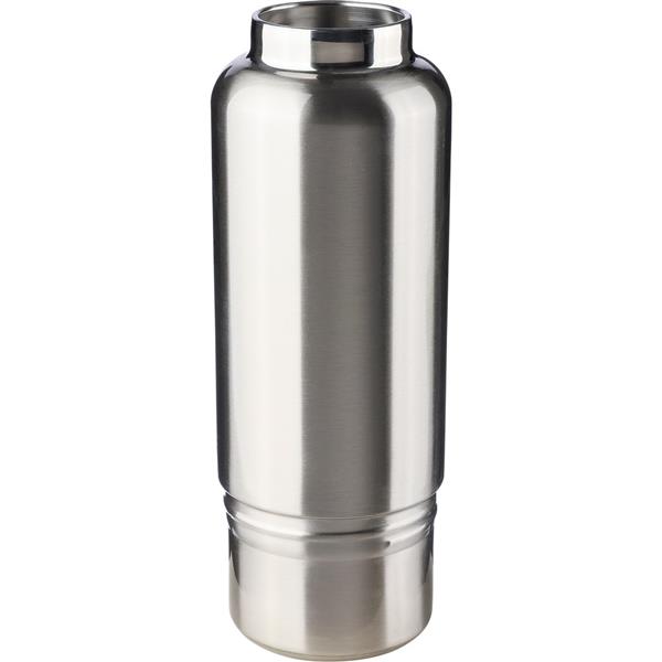 Butelka termiczna 500 ml ze stali nierdzewnej podwójne ścianki ze stali nierdzewnej z próżnią między ściankami dzięki czemu zachowuje funkcje termosu i długo utrzymuje temperaturę nie oddając jej na zewnątrz, zewnętrzna część wykonana jest ze stali nierdzewnej 201, a wewnętrzna ścianka ze stali nierdzewnej 304, nakrętką z PP, pasek ułatwiający noszenie, kubek 200 ml umieszczany w podstawie, pakowana w papierowy kartonik
