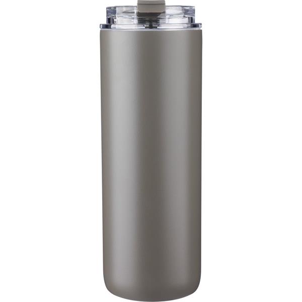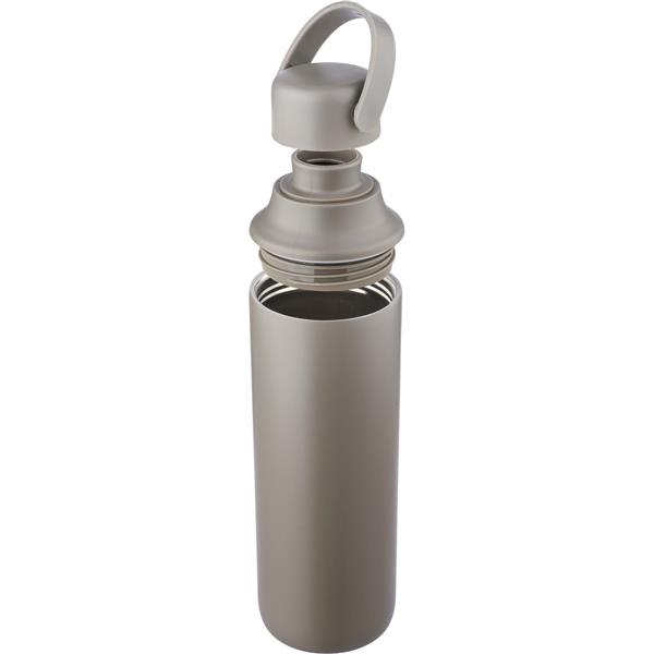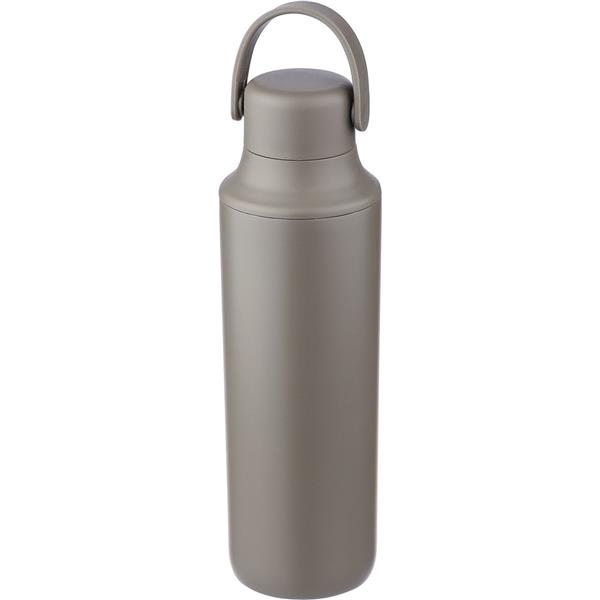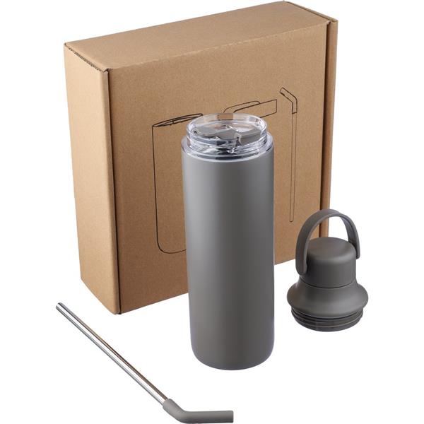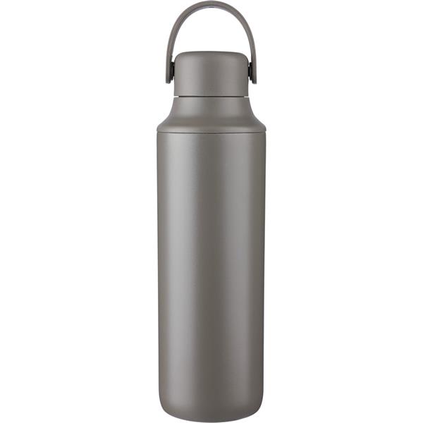 Butelka 500 ml ze stali nierdzewnej, uchwyt ułatwiający noszenie, podwójne ścianki ze stali nierdzewnej z próżnią między ściankami dzięki czemu zachowuje funkcje termosu i długo utrzymuje temperaturę nie oddając jej na zewnątrz, zewnętrzna część wykonana jest ze stali nierdzewnej 201, a wewnętrzna ścianka ze stali nierdzewnej 304, dwa wieczka, zapakowana w brązowe kartonowe pudełko, utrzymuje temperaturę napojów gorących do 15 godzin