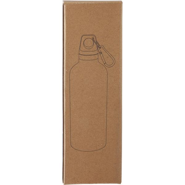 Butelka termiczna 500 ml, posiada podwójne ścianki, które spowalniają oddawanie temperatury na zewnątrz, utrzymuje temperaturę napojów: ciepłych do 8 godzin, zimnych do 12 godzin, posiada matowe wykończenie (z wyjątkiem koloru -32), ikona recyklingu na produkcie, nie nadaje się do mycia w zmywarce, pakowana pojedynczo w brązowe kartonowe pudełko, produkt wykonany stali nierdzewnej z recyklingu, nakrętka z PP, aluminiowy karabińczyk