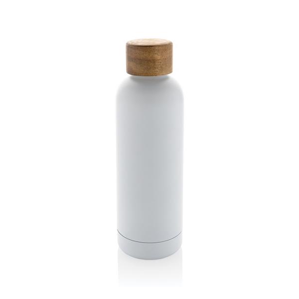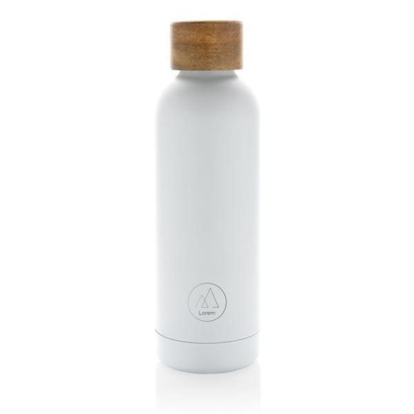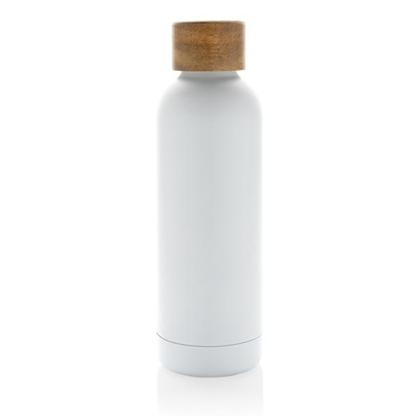 Butelka termiczna 500 ml, podwójne ścianki z próżnią pomiędzy, utrzymuje temperaturę napojów ciepłych do 5 godzin oraz zimnych do 15 godzin, wykonana ze stali nierdzewnej z recyklingu z certyfikatem RSC (Recycled Claim Standard) który gwarantuje, że wykorzystane materiały pochodzą z recyklingu, całkowita zawartość materiału z recyklingu obliczona w oparciu o wagę całkowitą przedmiotu: 88%, w pudełku z papieru kraftowego, ślad węglowy produktu: 2,37 kg CO2