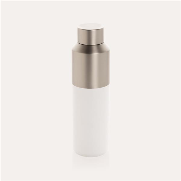 Butelka termiczna 600 ml, wykonana z materiałów z recyklingu z certyfikatem RCS, podwójne ścianki ze stali nierdzewnej z próżnią pomiędzy, utrzymuje temperaturę napojów gorących do 5 godzin i zimnych do 15 godzin