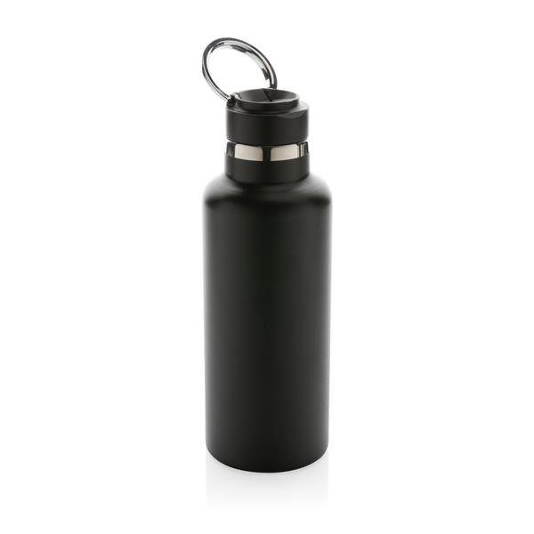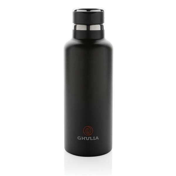 Butelka termiczna 600 ml, składany ustnik w nakrętce, podwójne ścianki z próżnią pomiędzy, utrzymuje temperaturę napojów ciepłych do 5 godzin oraz zimnych do 15 godzin, wykonana z materiałów pochodzących z recyklingu z certyfikatem RSC, całkowita zawartość materiału z recyklingu obliczona w oparciu o wagę całkowitą przedmiotu: 83%, w pudełku z papieru kraftowego z certyfikatem FSC®, nie zawiera BPA, ślad węglowy produktu: 2,49 kg CO2