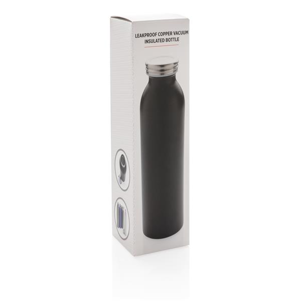 Butelka termiczna 600 ml, miedziana izolacja próżniowa, utrzymuje napoje ciepłe do 8 godzin oraz zimne do 24 godzin, szczelna, klasa termiczna: A, ślad węglowy produktu: 3,71 kg CO2