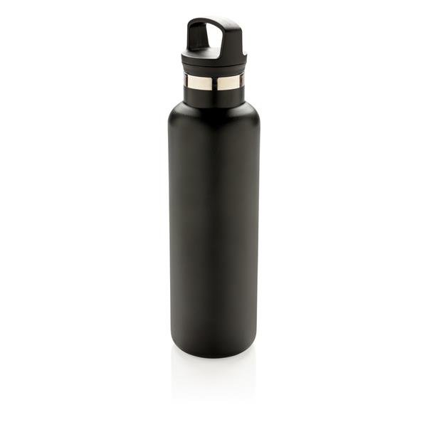 Butelka termiczna 600 ml, proszkowa powłoka, podwójne ścianki, zakrętka 2 w 1 z wyjmowanym sitkiem do zaparzania herbaty lub dodawania do wody owoców i ziół, ustnik do sączenia napojów i dodawania kostek lodu, wewnątrz stal nierdzewna 304, stal nierdzewna 201 na zewnątrz, utrzymuje temperaturę ciepłych napojów do 5 godzin oraz zimnych do 15 godzin, klasa termiczna: A