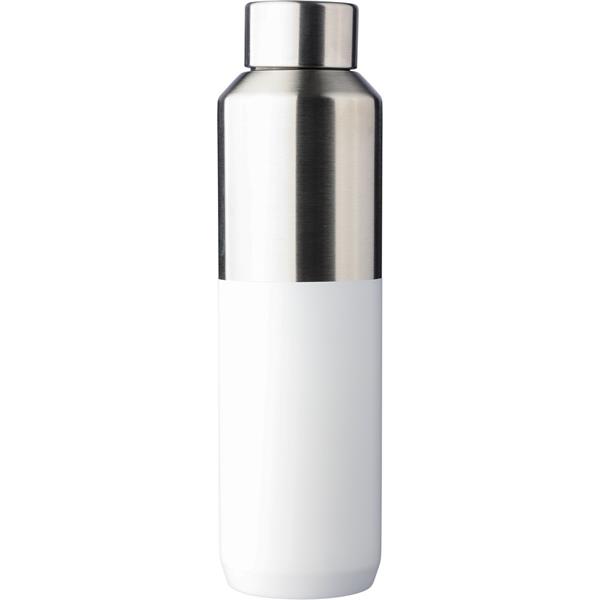Butelka termiczna 600 ml ze stali nierdzewnej z nakrętką z PP, podwójne ścianki ze stali nierdzewnej z próżnią między ściankami dzięki czemu zachowuje funkcje termosu i długo utrzymuje temperaturę, nie oddając jej na zewnątrz, zewnętrzna część wykonana jest ze stali nierdzewnej 201, a wewnętrzna ścianka ze stali nierdzewnej 304, ikona recyklingu na produkcie, zapakowana w brązowe kartonowe pudełko