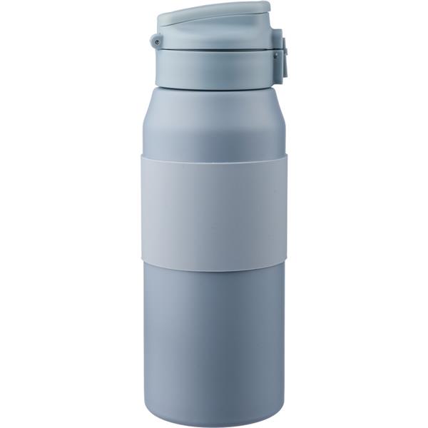 Butelka termiczna 800 ml, posiada podwójne ścianki ze stali nierdzewnej z próżnią między ściankami, co spowalnia oddawanie temperatury na zewnątrz, zachowując funkcje termosu, silikonowy uchwyt zwiększający wygodę użytkowania, uchwyt znajduje się w nakrętce, specjalny dzióbek połączony ze słomką ułatwiający picie, zapakowana w brązowy kartonik, produkt wykonany ze stali nierdzewnej, PP i silikonu