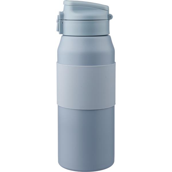 Butelka termiczna 800 ml, posiada podwójne ścianki ze stali nierdzewnej z próżnią między ściankami, co spowalnia oddawanie temperatury na zewnątrz, zachowując funkcje termosu, silikonowy uchwyt zwiększający wygodę użytkowania, uchwyt znajduje się w nakrętce, specjalny dzióbek połączony ze słomką ułatwiający picie, zapakowana w brązowy kartonik, produkt wykonany ze stali nierdzewnej, PP i silikonu, utrzymuje temperaturę napojów gorących do 20 godzin +leakproof