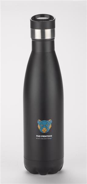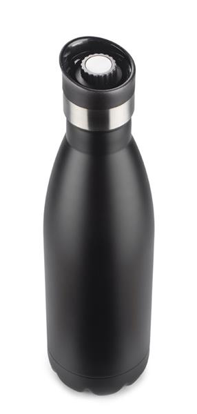 Butelka termiczna BURN wykonana ze stali nierdzewnej o podwyższonym standardzie dzięki próżni między ściankami utrzymuje temperaturę do ok. 12 godzin. Przykrywka z ustnikiem posiada wygodny przycisk, dzięki któremu aby się napić nie trzeba jej odkręcać.