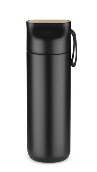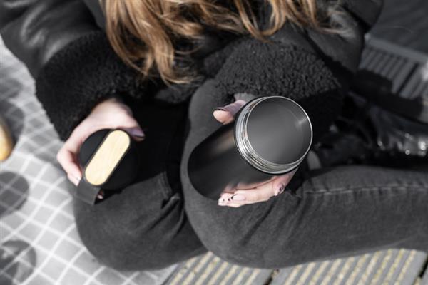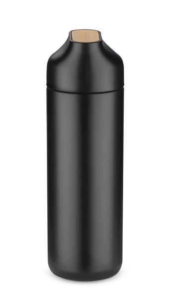 Butelka termiczna ELSA wykonana jest ze stali nierdzewnej o podwyższonym standardzie. Posiada próżnię między ściankami, dzięki czemu utrzymuje temperaturę napoju około 10 godzin. Zakrętka z tworzywa posiada ozdobny element z naturalnego bambusa i silikonowy uchwyt.