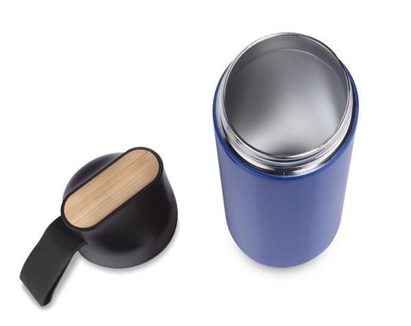 Butelka termiczna ELSA wykonana jest ze stali nierdzewnej o podwyższonym standardzie. Posiada próżnię między ściankami, dzięki czemu utrzymuje temperaturę napoju około 10 godzin. Zakrętka z tworzywa posiada ozdobny element z naturalnego bambusa i silikonowy uchwyt.