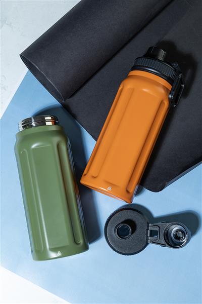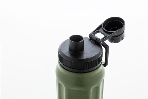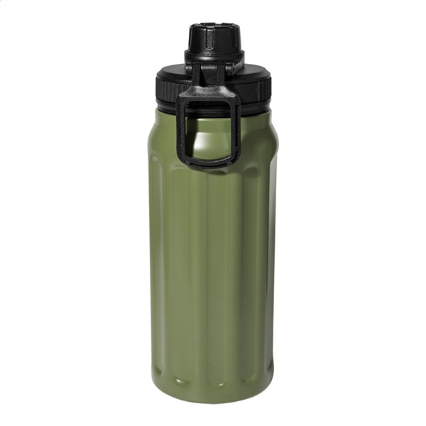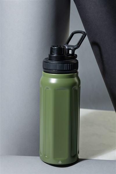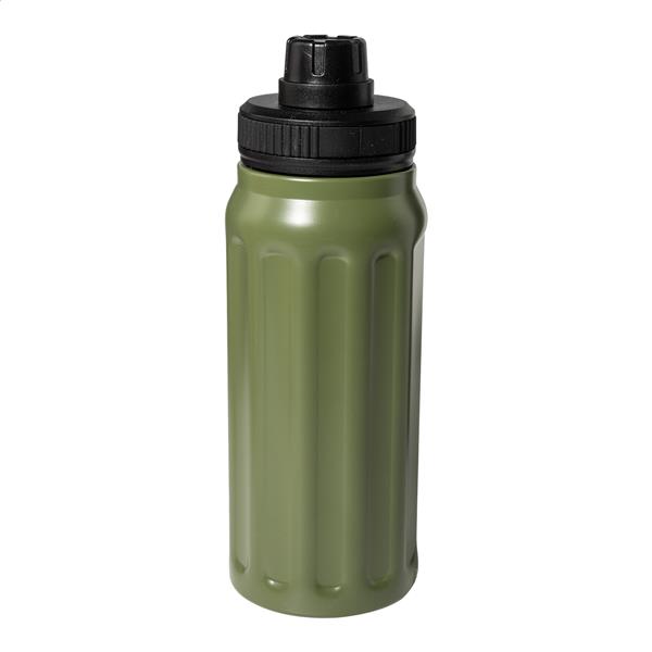 Dwuścienna, izolowana butelka próżniowa ze stali nierdzewnej z pionowymi rowkami. Posiada pokrywkę z PP z wbudowanym uchwytem do przenoszenia. Pojemność 540 ml.