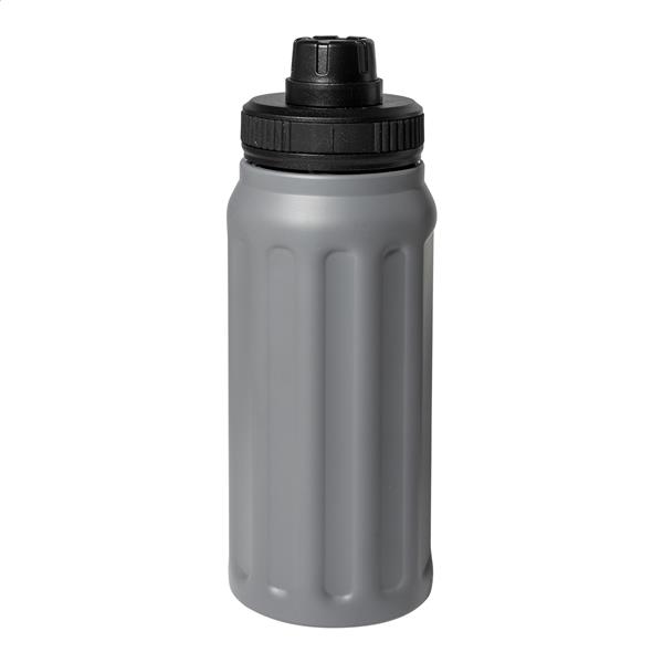 Dwuścienna, izolowana butelka próżniowa ze stali nierdzewnej z pionowymi rowkami. Posiada pokrywkę z PP z wbudowanym uchwytem do przenoszenia. Pojemność 540 ml.