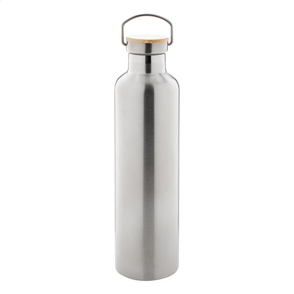 Butelka z podwójną ścianką, izolowana próżniowo, wykonana ze stali nierdzewnej z recyklingu, z bambusową pokrywką, 1000 ml.
