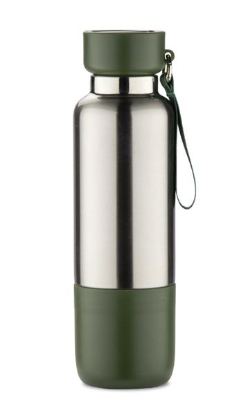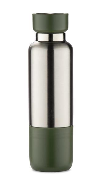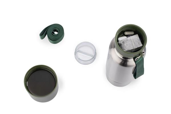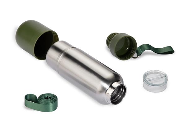 Butelka termiczna RON to doskonały wybór dla aktywnych osób, które cenią sobie zarówno wygodę, jak i funkcjonalność. Będzie idealna na trening i spontaniczne wyprawy. Butelka jest wyposażona w karabińczyk oraz dwie smycze: krótką i długą na zmianę, umożliwiające wygodne przenoszenie i łatwe dostosowanie do różnych sytuacji. Wystarczy założyć ją na nadgarstek podczas biegu lub zawiesić na plecach podczas wędrówki. Dodatkowo RON posiada zamknięcie z praktycznym schowkiem na drobiazgi (np. tabletki czy suplementy diety). Unikalna podstawa z tworzywa, która po wykręceniu staje się dodatkowym kubkiem, eliminuje ryzyko poparzenia języka i pozwala na wygodniejsze spożywanie napoju.