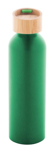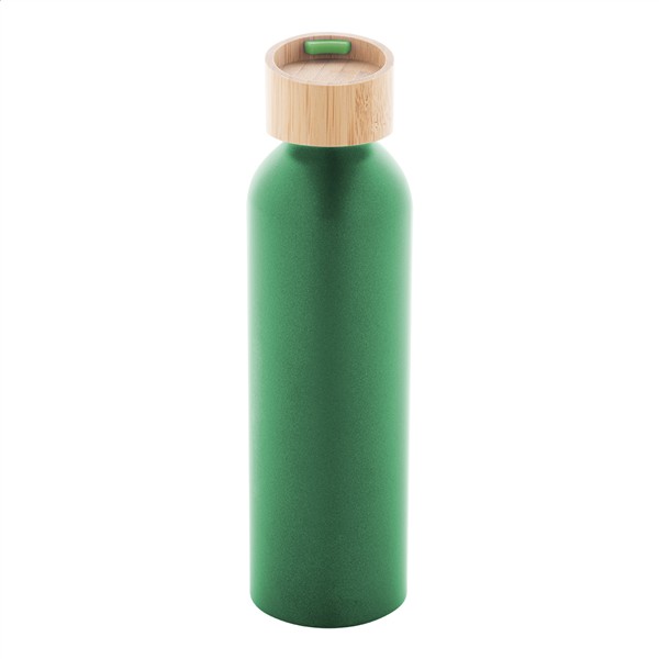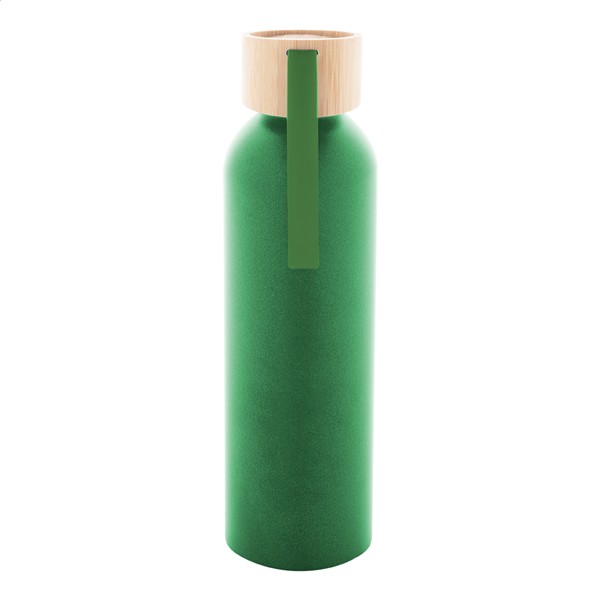 Butelka aluminiowa z recyklingu z bambusową pokrywką i silikonowym paskiem do noszenia w pasującym kolorze, 600 ml.