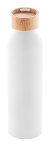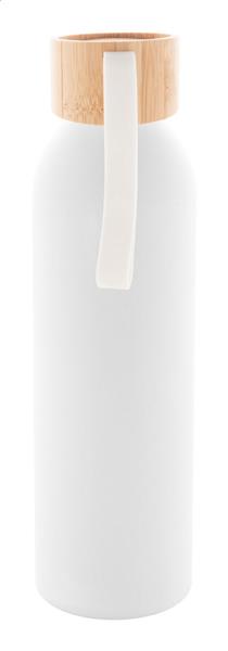 Butelka aluminiowa z recyklingu z bambusową pokrywką i silikonowym paskiem do noszenia w pasującym kolorze, 600 ml.