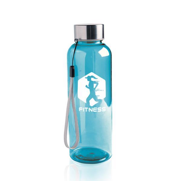Butelka z tritanu, z metalową zakrętką i uchwytem na nadgarstek, pojemność 500 ml. Pakowana w pudełko.