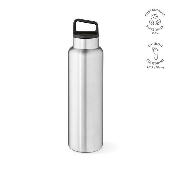Poznaj swojego ekologicznego partnera w nawadnianiu – butelkę 1620 ml (1 500ml net) z recyklingowanej stali nierdzewnej. Jest szczelna i wyposażona we wzmocniony karabińczyk ułatwiający transport. Ciesz się swoimi napojami dzięki tej butelce z podwójnymi ściankami.