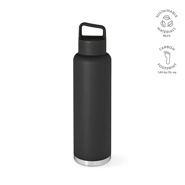 Poznaj swojego ekologicznego partnera w nawadnianiu – butelkę 1620 ml (1 500ml net) z recyklingowanej stali nierdzewnej. Jest szczelna i wyposażona we wzmocniony karabińczyk ułatwiający transport. Ciesz się swoimi napojami dzięki tej butelce z podwójnymi ściankami.