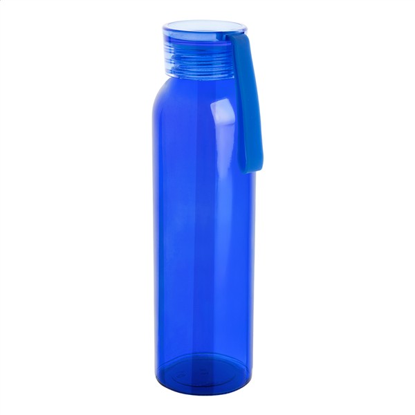 Butelka z recyklingowanego szkła z pasującą kolorystycznie pokrywką z PP i silikonowym paskiem do noszenia, 500 ml. Nie nadaje się do napojów gazowanych.