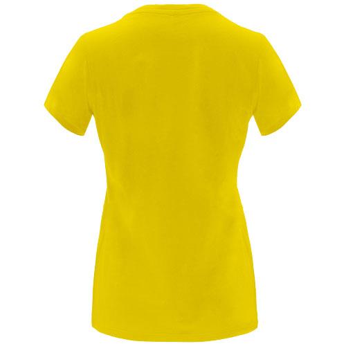 Capri koszulka damska z krótkim rękawemDamska dopasowana koszulka z krótkim rękawem. Okrągły prążkowany dekolt 1×1. Wzmocnione, kryte szwy na kołnierzu. Usuwalna metka.